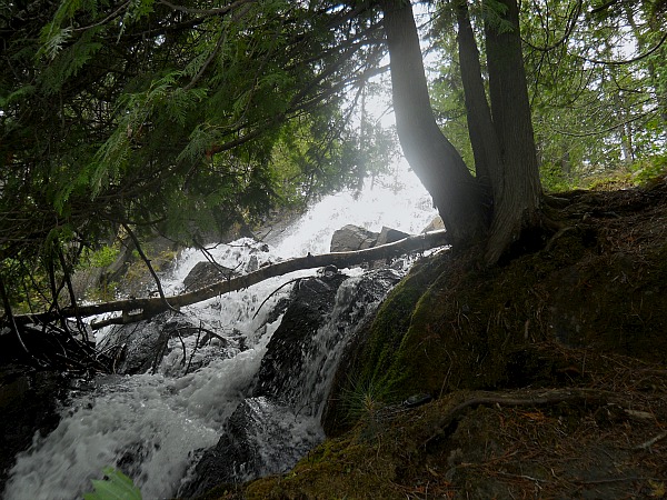 Louisa Falls is a beautiful cascading waterfall created from a little stream that drops from Louisa Lake into the southern part of the 22 mile Agnes Lake. In the middle of the falls, there is a little pool that forms, which is perfect for bathing and taking a shower in. The pool is large and deep enough for five to even up to ten people.
