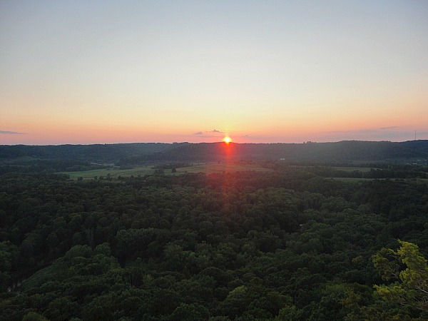 After paddling to Wauzeka and meeting the Wisconsin River and my car, I headed back into the Driftless Area and camped and hiked beautiful Wildcat Mountain State Park. At the park overlook I was treated to a spectacular sunset.