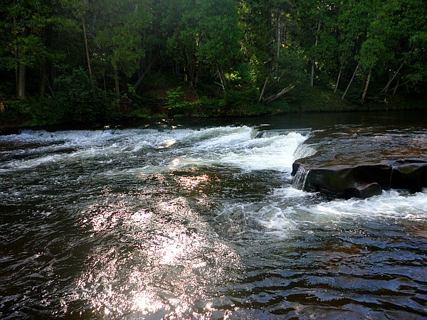 A ledge on the Brule River creating class II whitewater, which I kayaked successfully over recently in Wisconsin