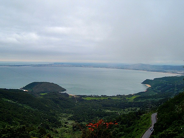 After several months traveling in Southeast Asia, the heat and humidity really got to me. I was so happy to escape the temperatures on a bus trip up the coast in Vietnam. I bought a ticket in Ho Chi Minh City for a bus ride to Hanoi with stops in Nha Trang and Hué. Once we got to Hué the temperatures cooled and a respite from the oppressive temperatures was a relief. This photo was taken between Hué and Hanoi. One great aspect about the bus trip was the road often followed the ocean with spectacular views like this one.
