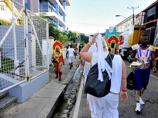 Once we got dropped off there were people everywhere heading toward their band to begin the adventure. It was odd walking through the streets at that time in the morning and instead of everyone walking to work in their suits or work clothes, you saw scenes like this all over the capitol of Trinidad & Tobago.
