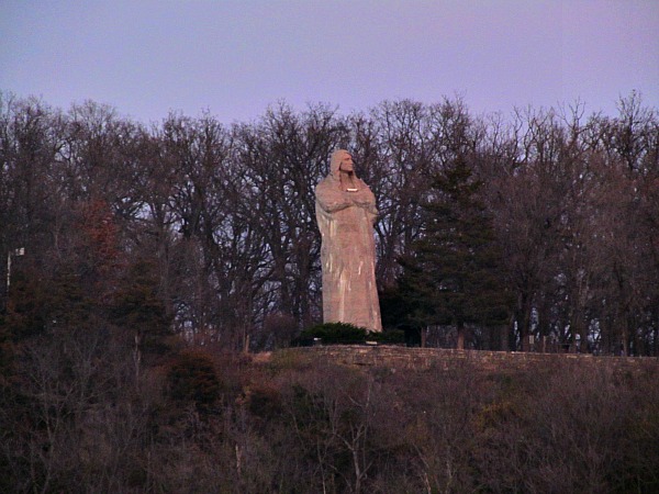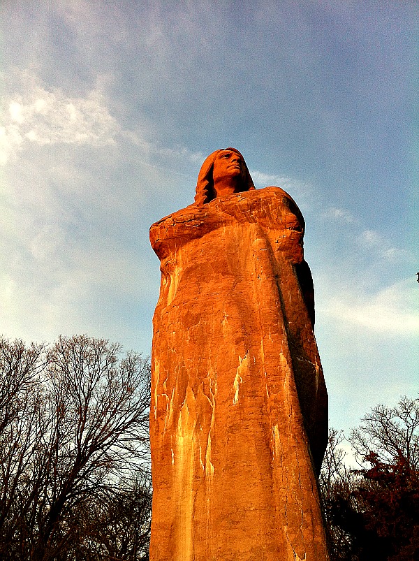I headed over to Lowden State Park along the Rock River. I drove around looking for a parking lot and found one at a trailhead near a statue. I got out of the car to find a beautiful 50 foot statue of a Native American right along a bluff overlooking the Rock River.