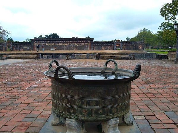 Hué, Vietnam is an important historical site for Vietnam. The Imperial Citadel, the Perfume River, the Nguyen Dynasty tombs can all be found in the ancient capital of Vietnam. Hué was also the scene of heavy fighting in the Vietnam War and damage from shrapnel and bullets are still evident in the Imperial Citadel. This picture is a bronze cauldron in the Imperial Citadel.