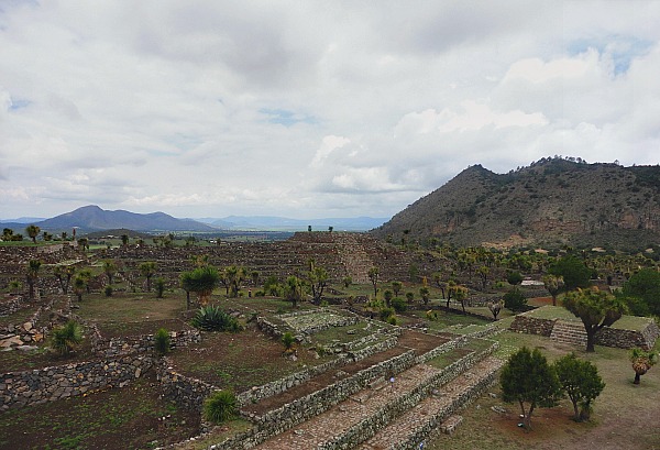 The surrounding landscape at Cantona was just as interesting as the ruins themselves. It kind of reminded me of the Big Bend Area in Texas or Death Valley in California as the flora consisted of desert type shrubs, but mountains loomed in the distance. Interspersed among the site was also a few stands of hardwood trees. Despite looking desert like, the climate was mild when we were there in June with a cool breeze and temperatures in the 70s.