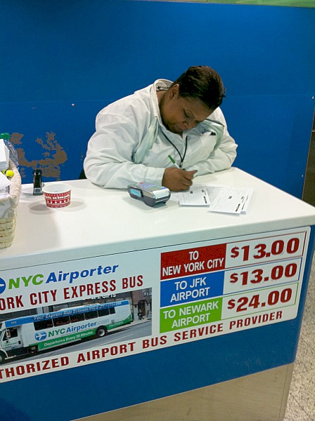 My helpful, but shy ticket agent hard at work – Give this lady a raise New York City Airporter