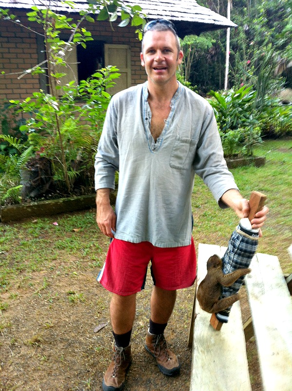 Until I saw the second photo of you holding the stick, I really thought that sloth was going to town on your leg.