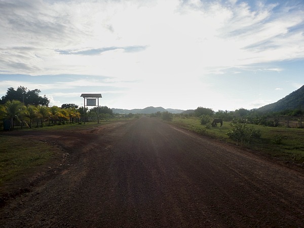 The arrow points to Lethem and the border with Brazil along the Georgetown-Lethem Road in front of the Guyana Oasis