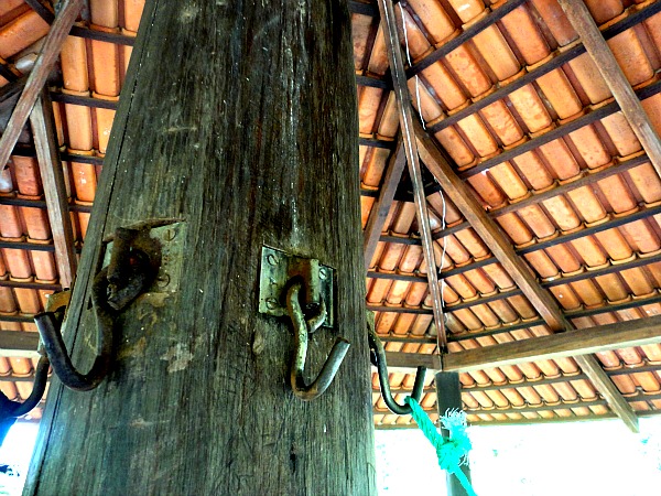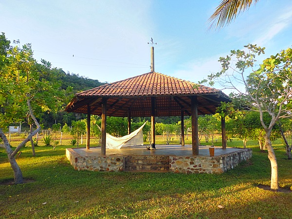 A benab is a gazebo like shelter, which seems to be unique to this area of the world. It appears to come from the Amerindian or indigenous culture. A benab has a pole in the middle, a roof, a domed top, and no walls. The pole and the outer rim of the ceiling have rings for hanging hammocks. See the picture above for my luxurious room.