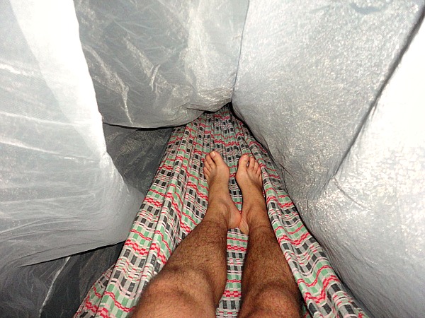 It was pretty comfortable and the mosquito netting and the breeze kept the bugs out, so I almost felt like I was inside until it started raining, and I was on the wrong side. Once I readjusted, I was fine.