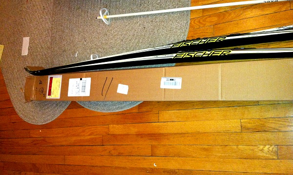 Fischer skis has graciously helped out the effort with a loaner pair of skis. I arrived home a couple of days ago with a giant box at my front door. Although I have a good pair of skis, they are not equipped for racing and are more for touring.
