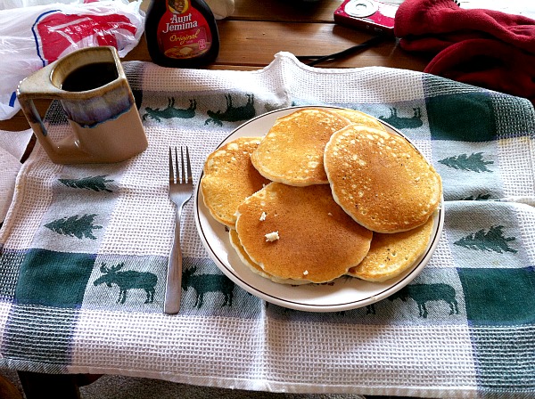 After a nice ski around the Ham Lake ski trail, I was back for breakfast. No ham and no steak for me. It was pancakes and eggs as I already had my ham on the Ham Lake ski trail.
