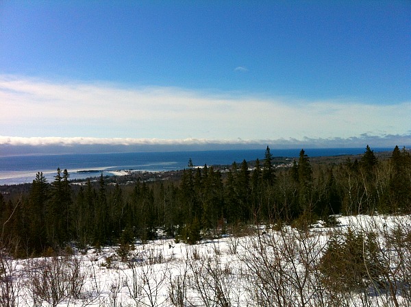 In the winter the road is the access point for snowmobilers and cross-country skiers. The first stop along the road is a scenic overlook of Lake Superior and Grand Marais. The parking lot for this overlook is also the trailhead for the Pincushion Mountain Trails.