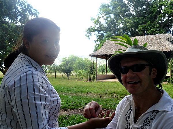 Guyana travel warning – Sweet Amerindian girl Lesslyn feeding me fresh roasted cashews in the Rupunini