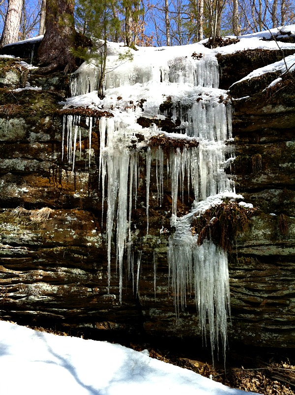 I decided it was time for spring and threw my skis in the car and headed to Devil’s Lake State Park in nearby Baraboo. Fortunately, I had the foresight to pack the hiking boots too. I hiked up to the top of the bluff with beautiful views of the frozen lake.