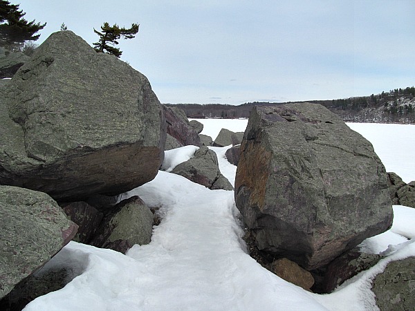 I then followed the Tumbled Rocks Trail down by the shore back to the car. In one day I did 8 miles of skiing and 4 miles of hiking on this early spring late winter day.