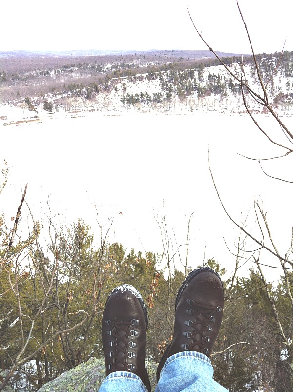 In one day I bridged the adventure travel activity gap between winter and spring. I felt like I passed outdoor adventure travel baton to myself from winter to spring via skiing to hiking. It felt great to get out and hike. Even though there was still a lot of snow on the ground, my new L.L. Bean boots gripped the snow and helped me up the bluff and back down.