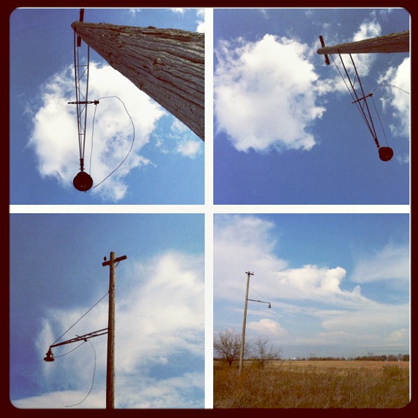 Collage of clouds and old Joliet Arsenal streetlights