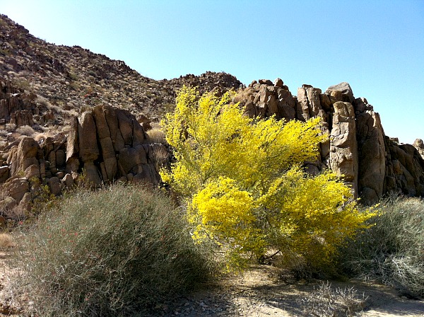 I was about to do this very same thing in Joshua Tree, but I did pull over to one of the turn offs and get out and walk around. A bright blaze of yellow caught my eye about a quarter of a mile from the road. I headed over to the spot and took a few pictures of the desert flowers.