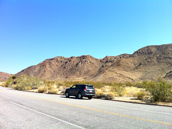 I immediately was impressed with the scenery. The rocks and sand were of a golden brown quality and the sky was a beautiful bright blue. Rocky hills, yucca plants, and of course Joshua trees dominated the landscape interspersed with flowers as the Toyota 4Runner I was driving cut through the desert park road.