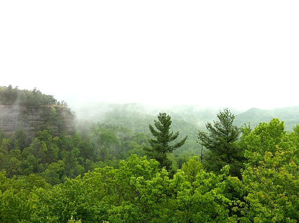 Evidence of the previous rain stood out as soon as we were in the hills of southeastern Kentucky after passing through Lexington. The woods were a vibrant dark green. We arrived early in the morning: hours before our scheduled check in time. We had to kill a few hours while they cleaned our cabin, so we hiked the Natural Bridge Trail. I felt like I was in a South American rainforest instead of the hills of Kentucky.