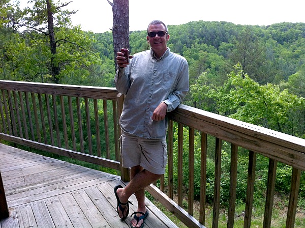 We checked in to our cabin, and we were given the Sundancer Cabin. I was immediately enthralled with the property. We had to drive about a mile down winding country roads to get there. The house was on a hill and the back porch overlooked a beautiful overlook. I could have spent all three days drinking beer on the deck.
