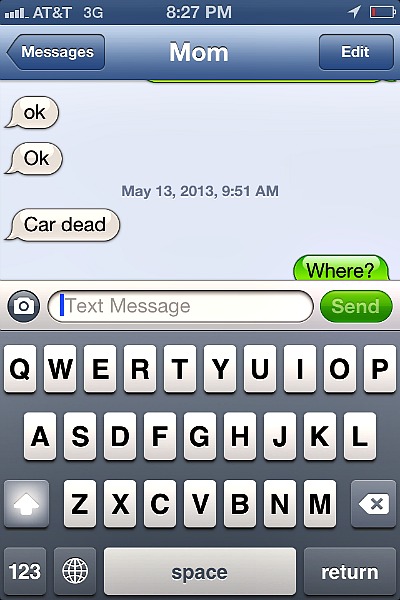 Those were the first texts I ever got from her. Trying to break her in slowly. Thanks to the cabin managers, we got the car up running quickly.