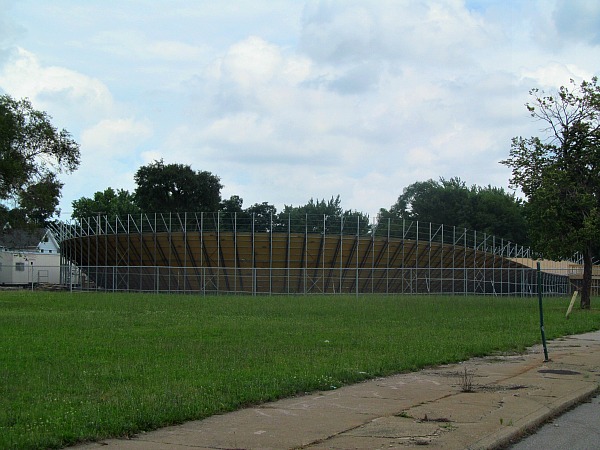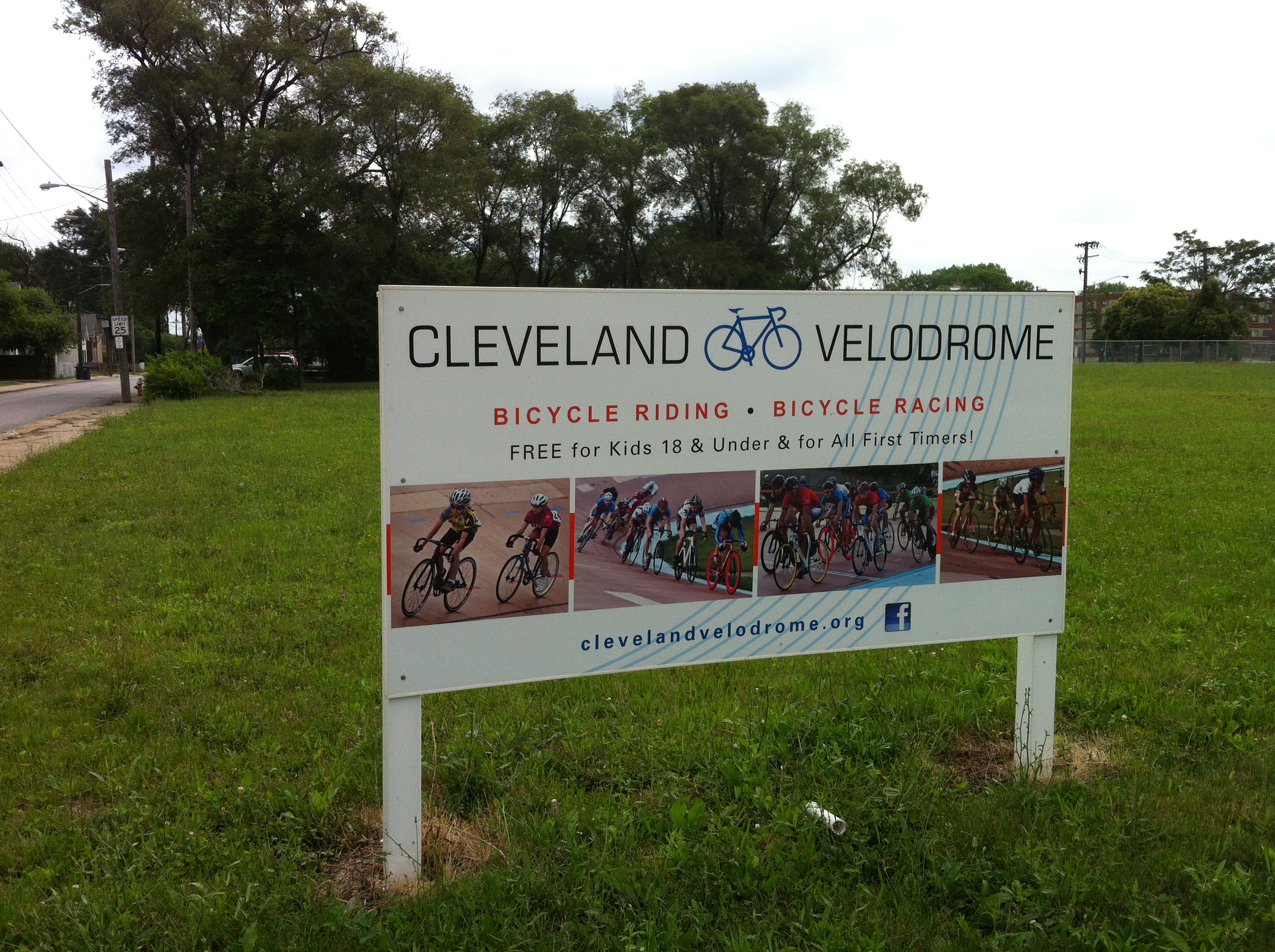 I drove through block after block of city streets and some run down areas in search of the track. I thought sure I was lost. When the voice on my map app said my location was on my left, I was pleasantly surprised to see a sign for the Cleveland Velodrome. Tucked away in the far corner of an empty plot of land rose an oval cycling track.