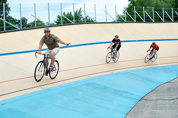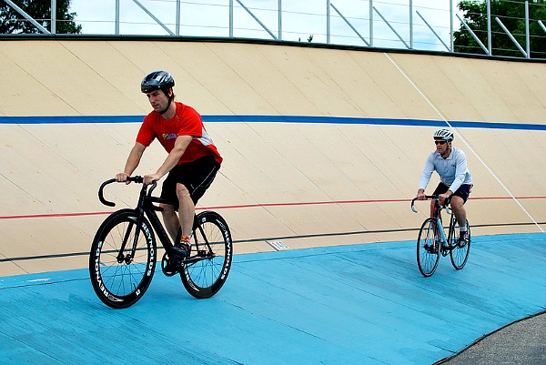 Speed is king when cycling the Velodrome. If you do not have enough speed the balance of the bike will seem shaky. Common sense and your natural instincts tend to want to go slow on something you are learning and unaccustomed to. If you follow this route, you will have a hard time staying on the track especially the higher up on the incline you go.