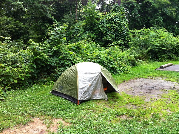 The rain then came back and the one positive about the campsite became a detriment. The tent place was nice and flat, but it was in a depression, which soon filled with water, so I had to move my tent up on the grassy incline.