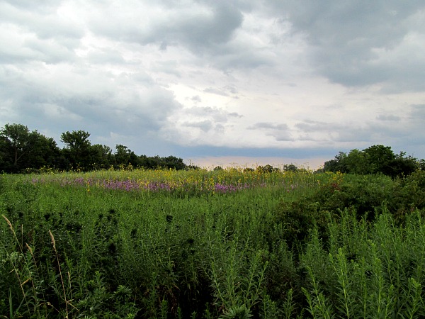 How cool to see the deer – I like that picture with the flowers in the foreground. Also, I like the ominous skies in the photos – they add great depth to the photos. And next time I see you, I may bring you some mosquito repellent!
