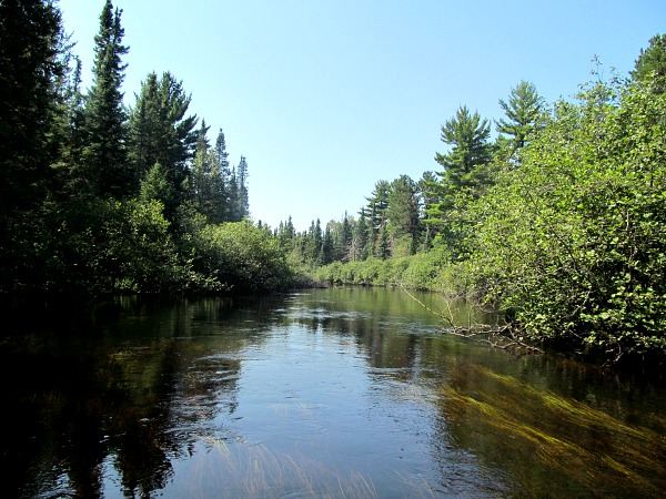 I have always wanted to paddle this section, but it has eluded me. I have driven over it many times on the way to Michigan’s Upper Peninsula. I even got out and hiked a little trail last year from the headwaters to near the highway in the Nicolet National Forest, but my paddle has yet to grace itself on my favorite river this far north.
