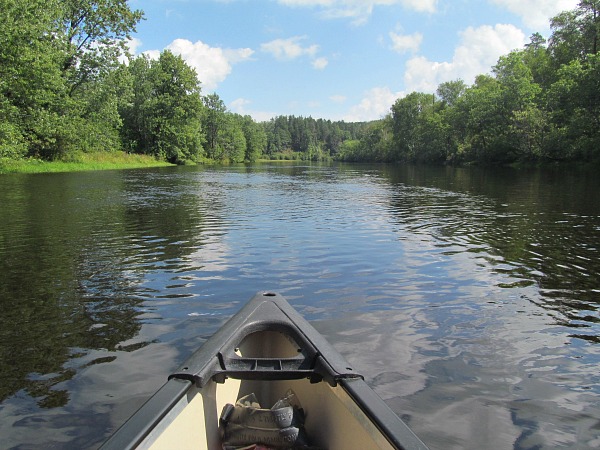 The stretch we canoed supposedly had class I rapids, but the rifles we encountered were of the no class variety. Even in low water, we floated through without worry. The only concern we had was protecting ourselves from an armada of deer flies that hovered over us the whole stretch of the river. That must be one of the criteria for wild river designation.