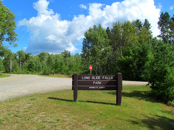 As soon as I headed south from Iron Mountain, Michigan, I immediately came across a sign for Long Slide Falls County Park. I turned right passing Morgan Park and less than a half mile away was another sign to Smalley Falls.