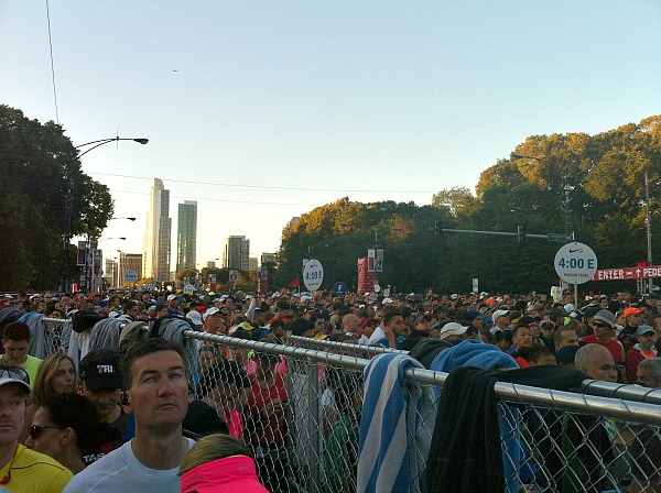 Once the race started it was fine Lance. I don’t think there is a solution to this except for peeing on the wall in the first mile. There is only so much space at Grant Park to fit port-o-potties. I think if the park was wall-to-wall potties, there would still be lines and no once would be able to move.