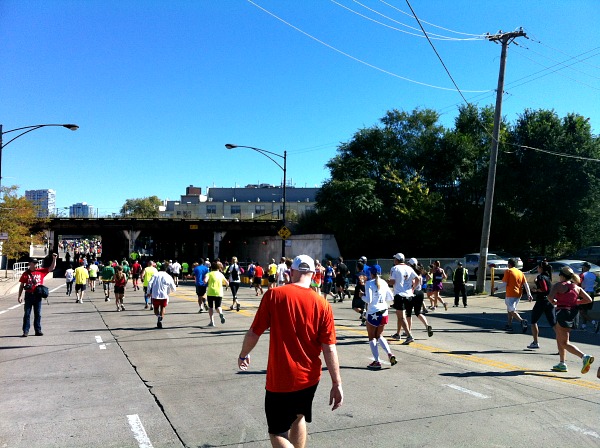 I did not blink and left the rank of the runners and soon I was peeing the Chicago Marathon. It is not something I was proud of, but at least I had company. This is the beauty of running the Chicago Marathon. With 40,000 other runners you will always have company. If you are feeling like you have to pee, there will likely be hundreds of others feeling the same way. If you can’t take it anymore and need to walk, there will be someone right next to you walking. Misery and people peeing love company.