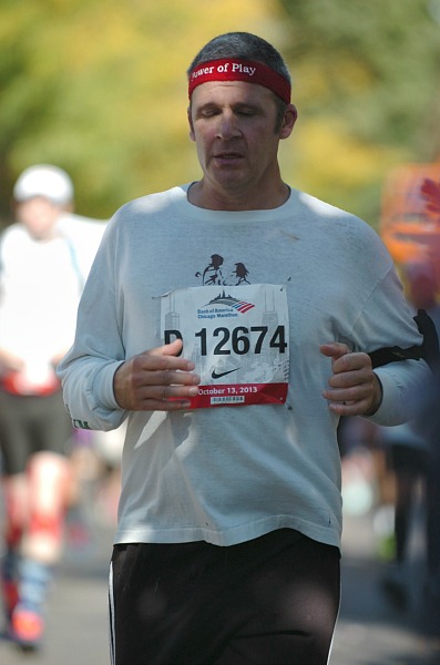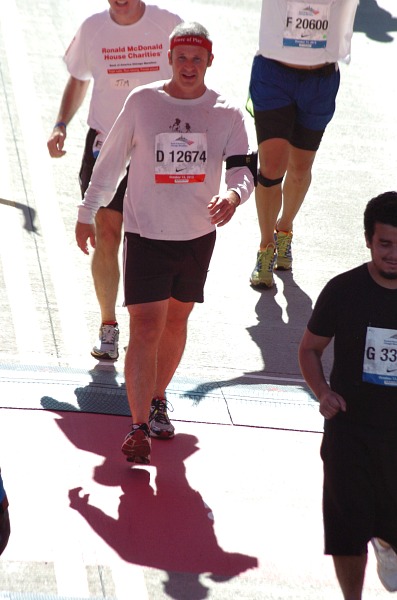 Fortunately, this did not happen. The photos do a good job of progressing through the race. I have some pictures where I look like I am actually competing as I ran a respectable 2:00 13 mile split. Then I have many painful pictures and ones of me walking when I hit the proverbial wall and hobbled in the last ten miles. I finished with a time of 4:54.