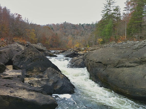 The trail is undemanding with scant elevation change thanks to hugging the river and is wide with decent footing. Once you hit the rapids you can explore hopping along the boulders to get better views of the rapids. Be careful hopping on the boulders as they can be slick and also look out for snakes. This is copperhead country although I have never seen one here.
