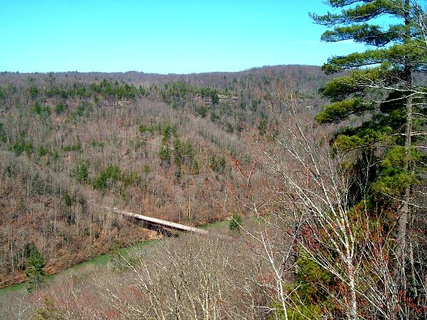 Angel Falls overlook – 2.8 miles one way from the Leatherwood Ford Trailhead near Bandy Creek