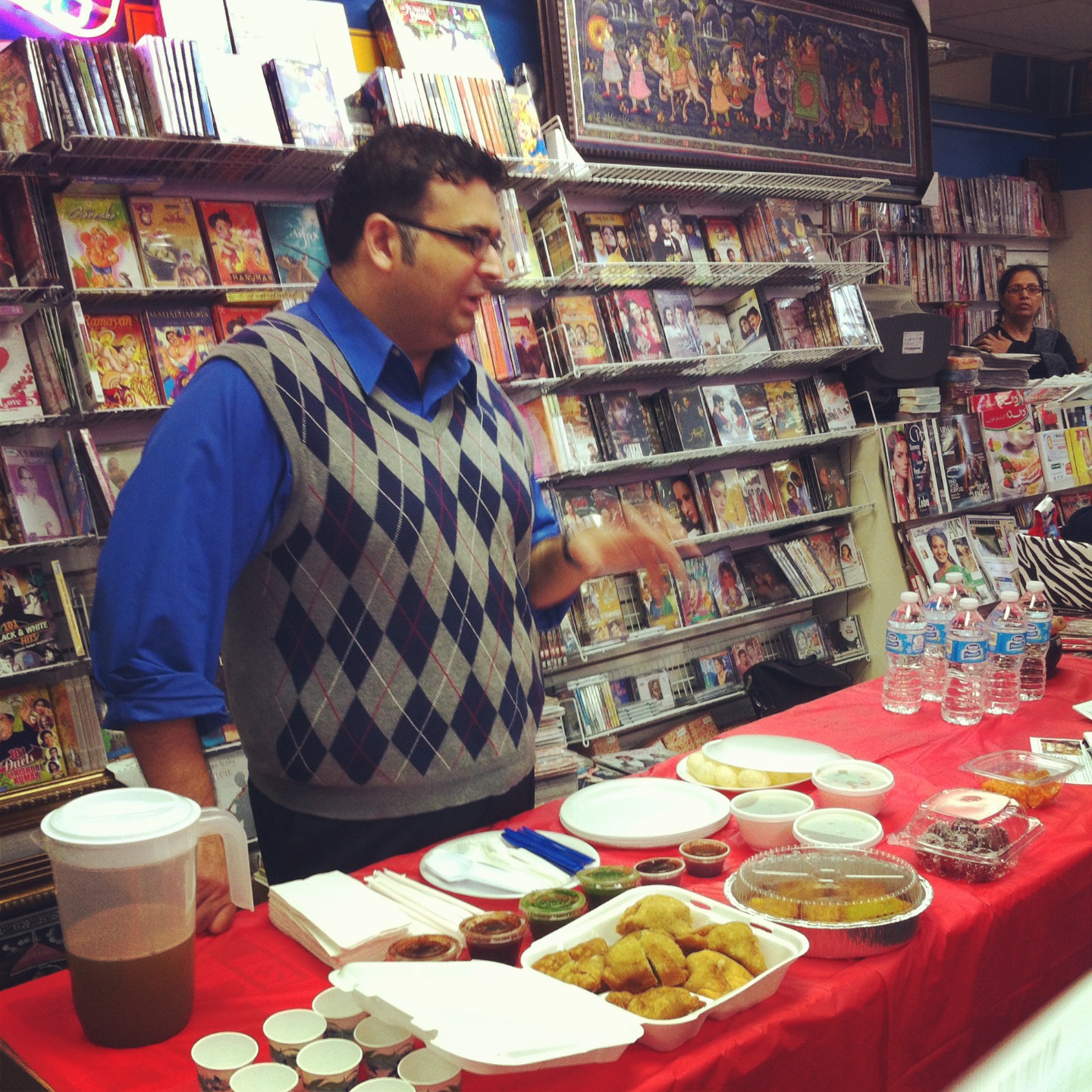 We met at the India Book House in Chicago’s Little India neighborhood on Devon Avenue. Mohammad sat in front of a table of what Americans would call appetizers. Mohammad introduced the tour, the basics of Indian cuisine, and discussed the dishes in front of him including samosas and aloo tikki. The items were served with a side of delicious tamarind and mint chutney.