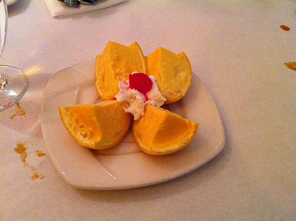 Every dish was very flavorful and none of it was all that spicy contrary to what many think and are turned off by Indian cuisine. We also enjoyed red wine that Mohammad picked out that paired perfectly with the menu items in front of us. The meal was topped off with an incredible frozen orange peel dish with whipped cream on top. It tasted like orange sherbert. It was fabulous.