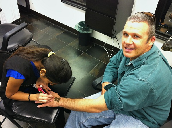 After waking up and realizing there was no Indian princess and elephant, it was off to Roopkala Beauty Salon for some henna. In only five minutes a beautiful design was drying on my hand.