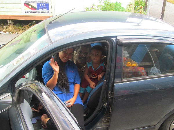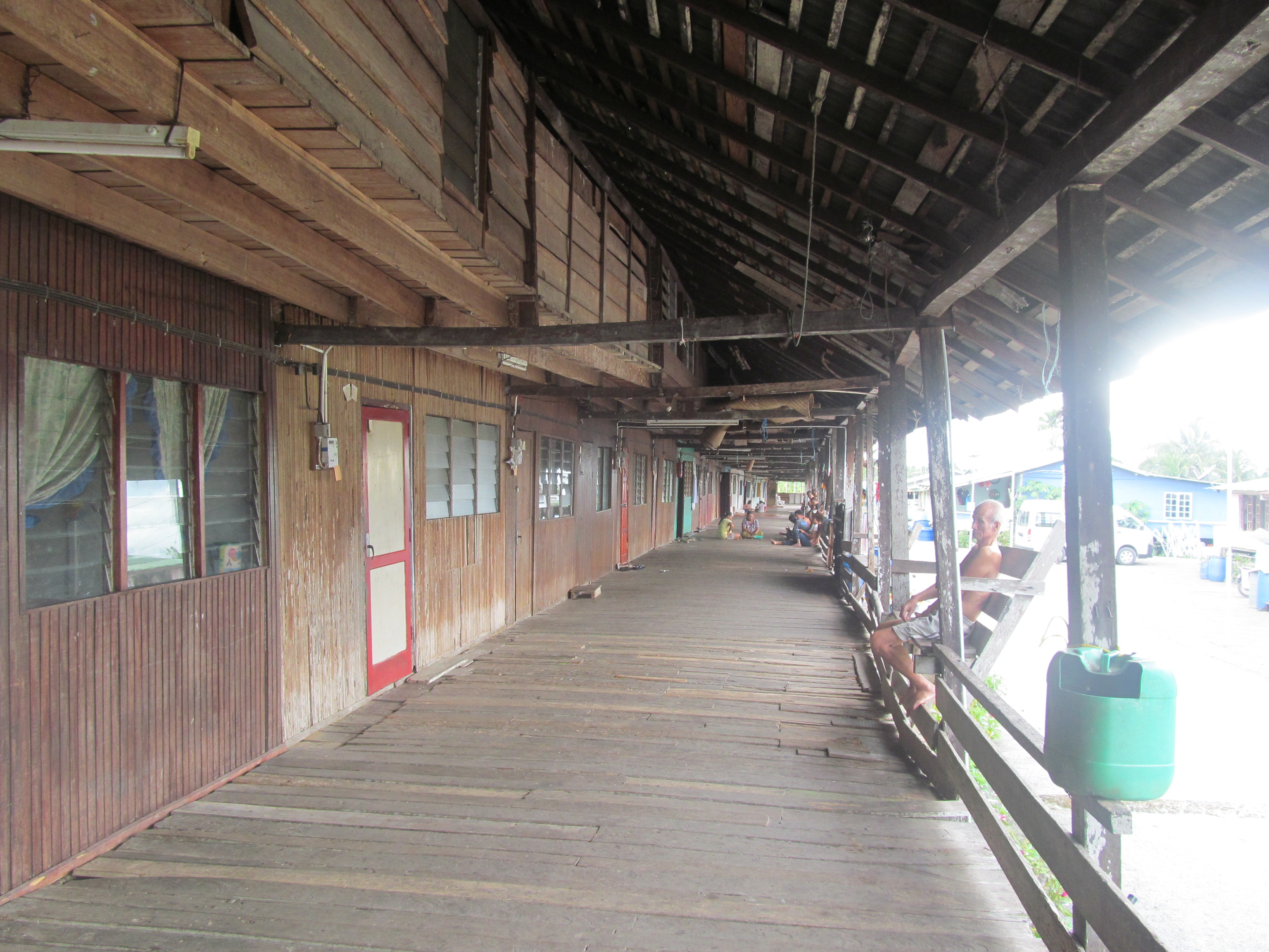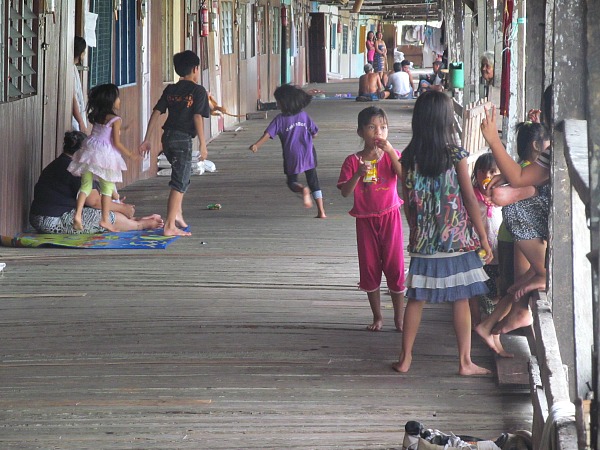 We pulled into the dwelling and climbed the stairs to the porch. Immediately people gravitated toward us. It was me and two guides from Planet Borneo. Shy but curious kids walked behind us and adults smiled and waved from chairs, windows, and even from cars on the streets.