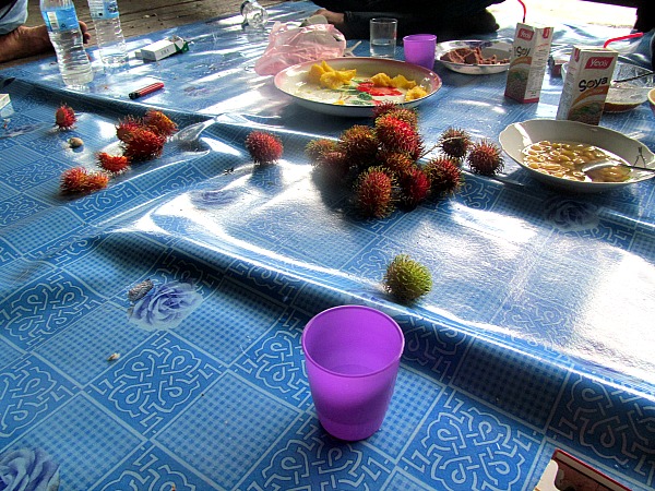 The best way to conduct business is with food and rice whiskey. I was the beneficiary of this welcoming as the longhouse community brought out fresh fruit, fresh vegetables, other types of snacks, and shot after shot of rice whiskey.