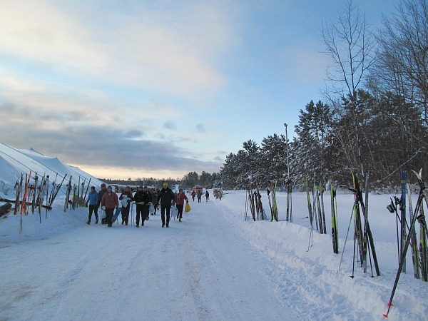 The bus for the Birkie leaves at 6 a.m. from Hayward and arrives an hour or more to the starting line depending on your wave. Then you sit in a warming tent waiting for your start time. There are no lines at the Great Bear Chase. It took me ten minutes to get registered at the bib pick up. It can take 30 minutes at the Birkie and then another 30 minutes to get to and from your car.