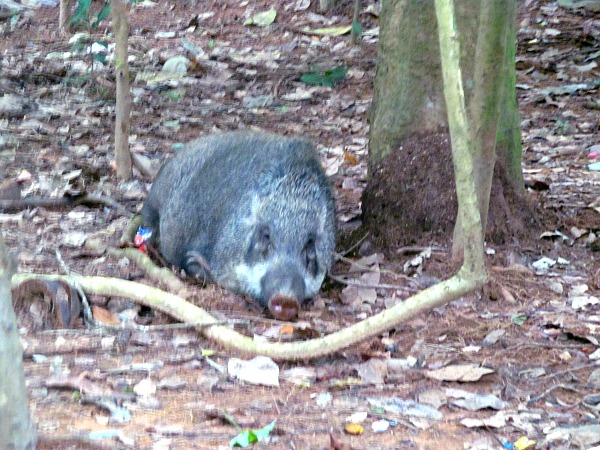 I saw some interesting bird and wildlife including crabs, a funny looking lizard that might have been a monitor lizard, a mud guppy, flocks of parakeets, and eagles from the Jejawi observation tower. There were also wild pigs hanging out at the bike rack where visitors could park their bikes while checking out the trails. There are hornbills on the island, but I did not get to see one of these unfortunately.