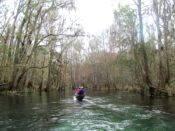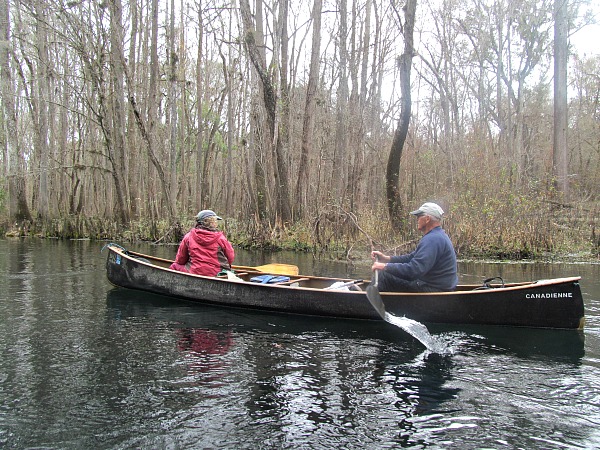 All canoe plans were canceled for two days. Finally, it warmed up enough to take a short paddle on the crystal clear Ichetucknee River. Because of its clear water and lack of alligators, the Ichetucknee is immensely popular with tubers in the spring and summer. There were no tubers on this day and only a couple other paddlers.
