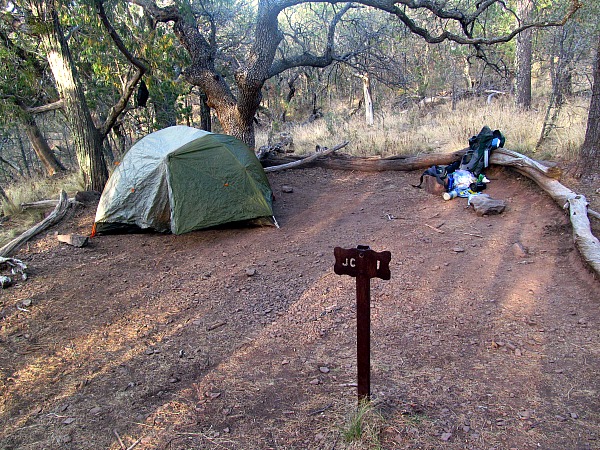 I put my albatross back on and continued with my hike. Fortunately, the first day was only a little more than six miles, not including the 3 mile detour to Emory Peak, and I had already hiked 5 miles. I was starting to tire and each incline was a lot of work. Soon though, the sign for Juniper Canyon campground pointed the way to my first night’s stay.