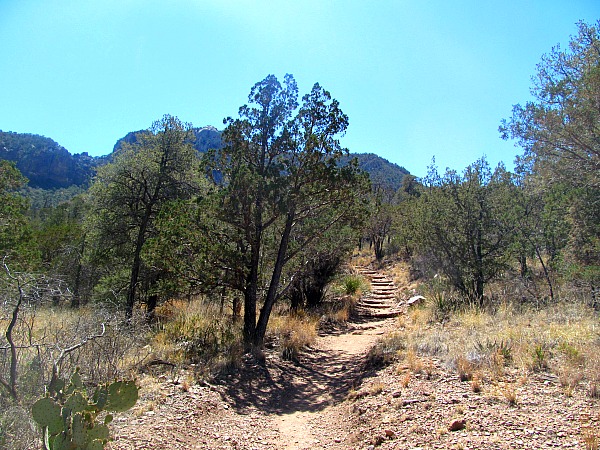 They went over the three main dangers. They are heat, fire, and critters. Big Bend is in a dangerous drought and the meadow and tree covered Chisos Mountains are as dry as the desert below. It would not take much to spark a fire on the mountains and create an extremely dangerous situation for those camping on top. The ranger told me that the route I was hiking down was the escape route, so if I detected any hint of fire, I should proceed forward on my planned hike or turn around and come back depending on where the fire is located at of course.